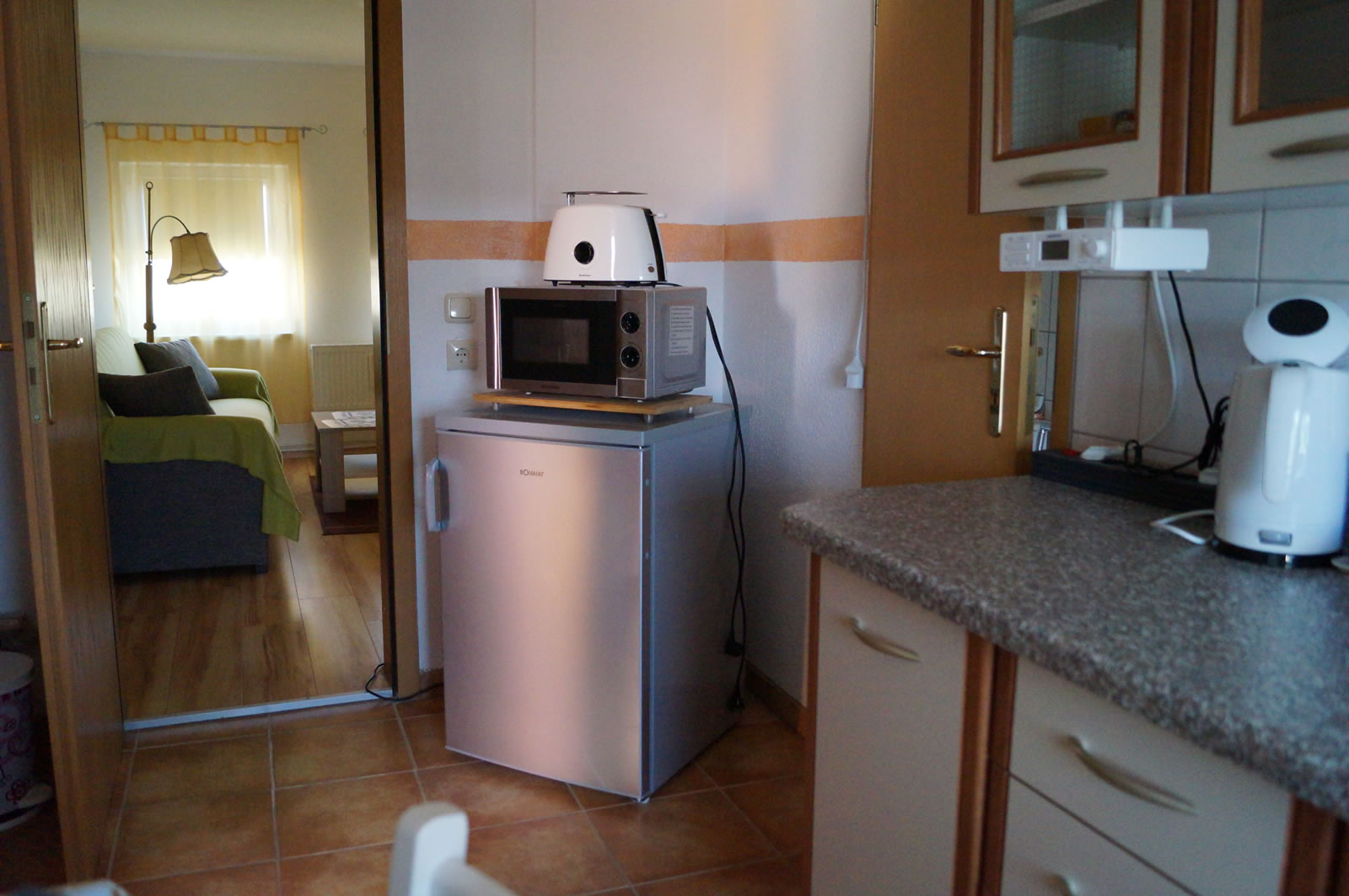 Die Ferienwohnung besteht aus einem Wohnzimmer mit Flachbildschirm, digitalem Fernsehen, DVD-Spieler und Internetzugang, einem Schlafzimmer mit Doppelbett, einem kleinen Schlafzimmer mit Doppelstockbett (für Kinder ab 4 Jahren), einer eingerichteten Küche, Eingangsflur mit Garderobe und einem Bad mit Dusche. Ein Carport steht auf dem Hof zur Verfügung.